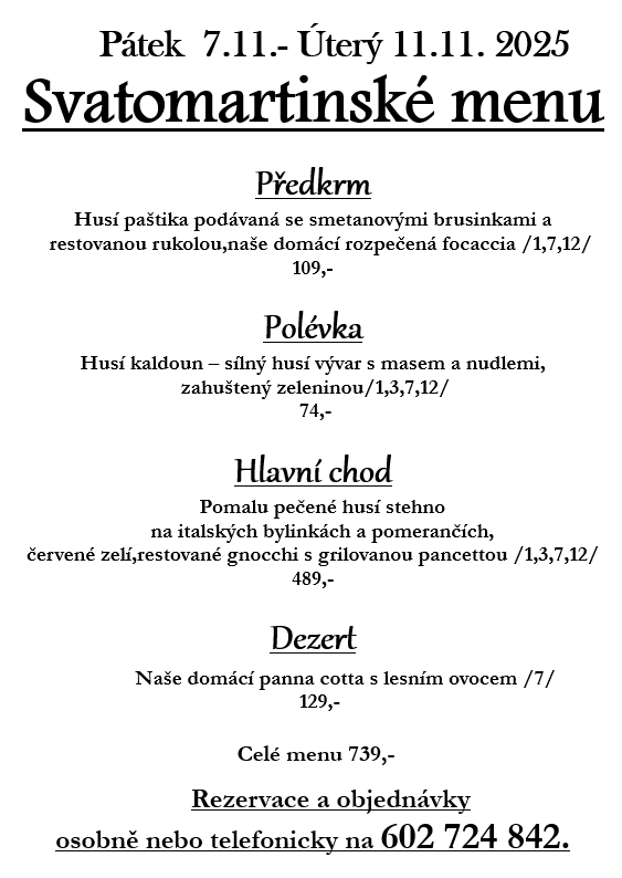 ‼️Od pátku 7.11. do úterý 11.11.2025 jsme pro Vás připravili Svatomartinské menu‼️😊